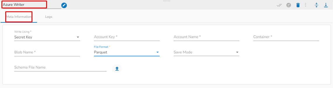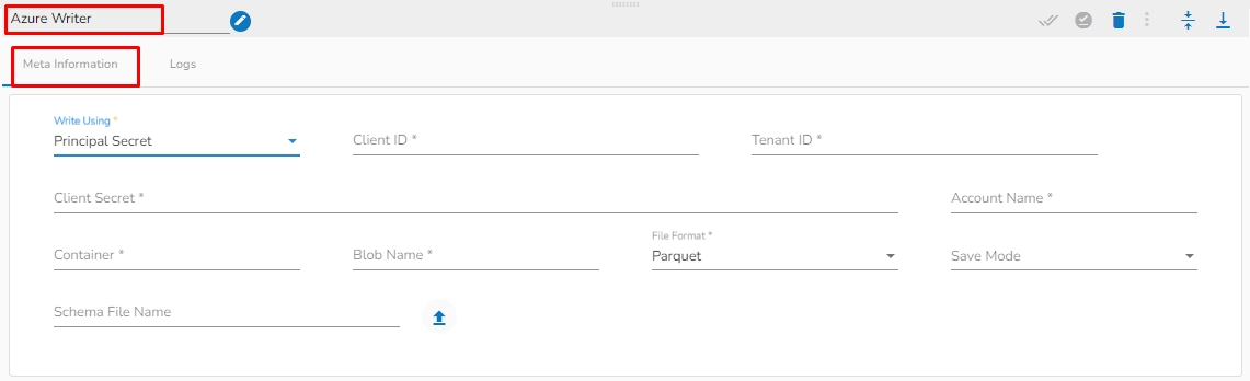 Azure Writer task is used to write the data in the Azure Blob Container.