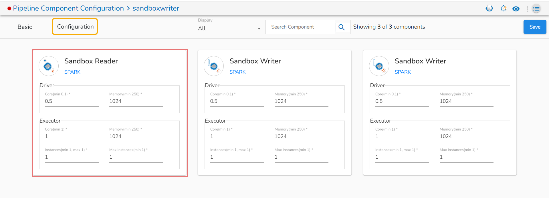 * All the components used in the selected pipeline will be listed on the configuration page.&#x20;