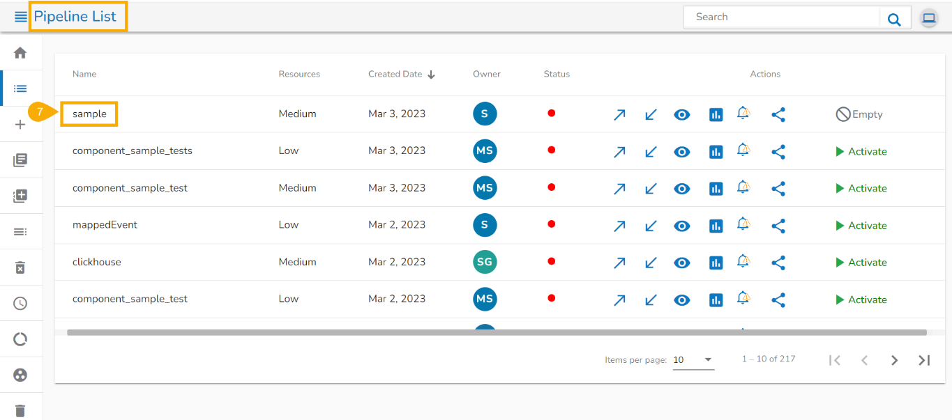 * Click the ***Delete*** icon for the selected Pipeline.