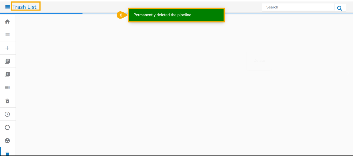 Check out the given illustration on how to use the Trash option provided on the Pipline homepage left menu panel.