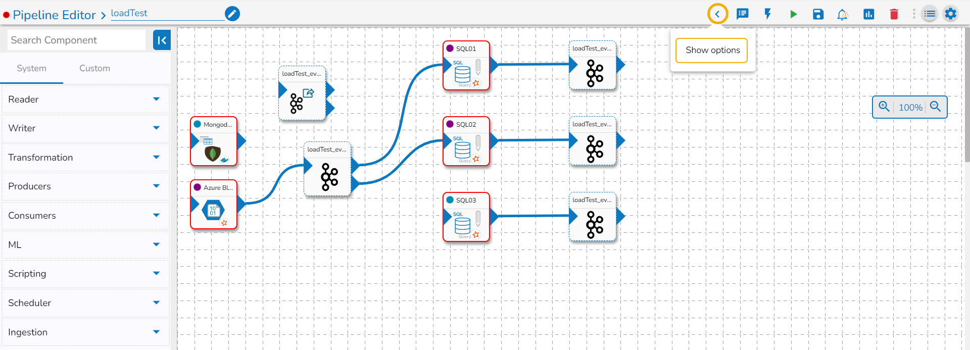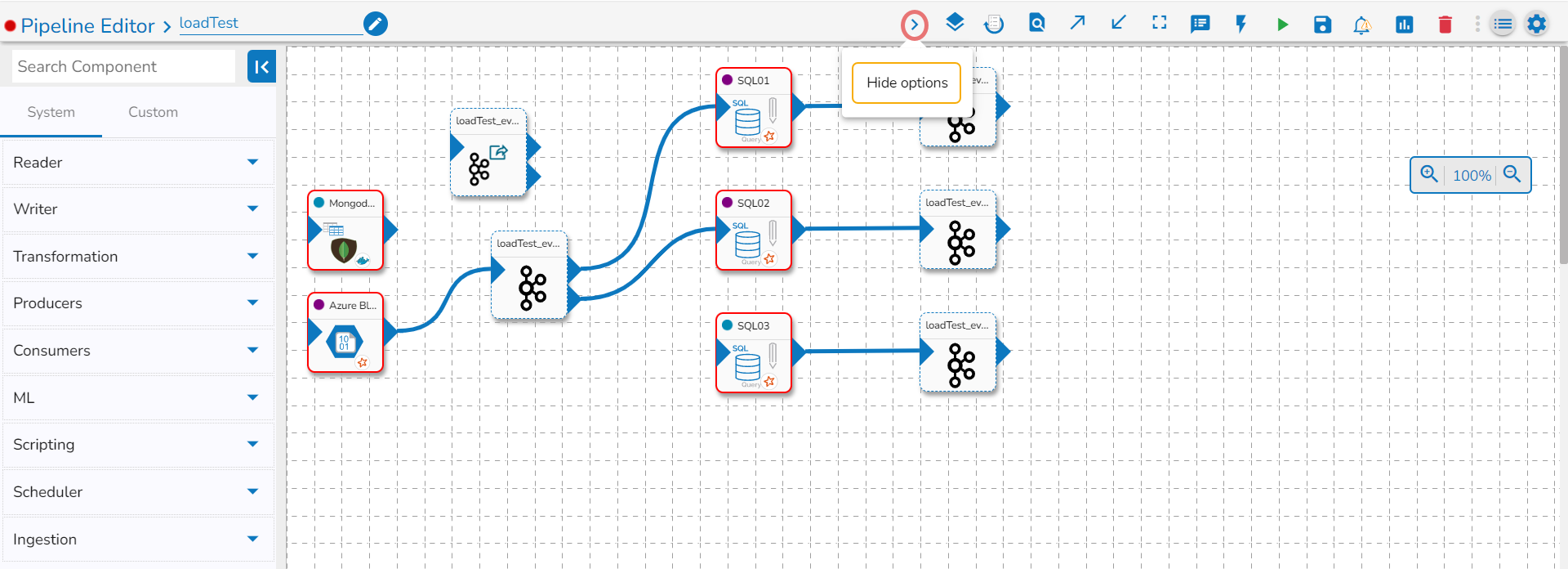 <table><thead><tr><th width="130.33333333333331">Icon</th><th width="269">Name</th><th>Action</th></tr></thead><tbody><tr><td><img src="https://content.gitbook.com/content/q2i9CKCFbySxr6jRoJfA/blobs/mtp1BzIZvIZbhgbwdSEP/image.png" alt="" data-size="line"></td><td><a href="pipeline-toolbar/pipeline-overview">Pipeline Overview</a></td><td>Opens Pipeline Overview page.</td></tr><tr><td><img src="https://content.gitbook.com/content/q2i9CKCFbySxr6jRoJfA/blobs/xSCRagCH6GwSYRv4cZea/image.png" alt="" data-size="line"></td><td><a href="pipeline-toolbar/pipeline-testing">Pipeline Testing</a></td><td>Redirects to the Pipeline testing page</td></tr><tr><td><img src="https://content.gitbook.com/content/q2i9CKCFbySxr6jRoJfA/blobs/3WKwFgvuX7RxZSaVTc8L/image.png" alt="" data-size="line">/ <img src="https://content.gitbook.com/content/q2i9CKCFbySxr6jRoJfA/blobs/XC7frl6Wj3ZM4vVyNASy/image.png" alt="" data-size="line"></td><td><a href="pipeline-toolbar/search-component-in-pipelines">Search Component in Pipelines</a></td><td>Helps to search component across Pipelines through the Object Browser panel.</td></tr><tr><td><img src="https://content.gitbook.com/content/q2i9CKCFbySxr6jRoJfA/blobs/SsNzY4uv7X7GInLCOFSQ/image.png" alt="" data-size="line"></td><td><a href="pipeline-toolbar/push-pipeline-to-vcs-git">Push Pipeline</a></td><td>Allows to push the pipeline to VCS or GIT</td></tr><tr><td><img src="https://content.gitbook.com/content/q2i9CKCFbySxr6jRoJfA/blobs/hZVdQ6GjnEk1ClbutG7P/image.png" alt="" data-size="line"></td><td><a href="pipeline-toolbar/pull-pipeline">Pull Pipeline</a></td><td>Helps to pull the pipeline from the VCS</td></tr><tr><td><img src="https://content.gitbook.com/content/q2i9CKCFbySxr6jRoJfA/blobs/IVON7l5nYR9iFSejecZu/image.png" alt="" data-size="line"></td><td><a href="pipeline-toolbar/full-screen">Full Screen</a></td><td>Opens the Pipeline in Full screen</td></tr><tr><td><img src="https://content.gitbook.com/content/q2i9CKCFbySxr6jRoJfA/blobs/TLHvAN62l1sB5XLwU5Mo/image.png" alt="" data-size="line"> / <img src="https://content.gitbook.com/content/q2i9CKCFbySxr6jRoJfA/blobs/fjri4q9AbGauxcOqtKIy/image.png" alt="" data-size="line"></td><td><a href="pipeline-toolbar/log-panel">Log Panel</a></td><td>Opens or closes the log panel </td></tr><tr><td><img src="https://content.gitbook.com/content/q2i9CKCFbySxr6jRoJfA/blobs/7oJzkUkZzkHFI1kZic0V/image.png" alt="" data-size="line"> /  <img src="https://content.gitbook.com/content/q2i9CKCFbySxr6jRoJfA/blobs/k50FOOZhZYsT9iR2Opds/image.png" alt="" data-size="line"></td><td><a href="pipeline-toolbar/event-panel">Event Panel</a></td><td>Opens or closes Event panel</td></tr><tr><td><img src="https://content.gitbook.com/content/q2i9CKCFbySxr6jRoJfA/blobs/Zx7777nVaYjNkrH2VZTG/image.png" alt="" data-size="line"> / <img src="https://content.gitbook.com/content/q2i9CKCFbySxr6jRoJfA/blobs/oc4dP7OPQbDTb6c6OPPl/image.png" alt="" data-size="line"></td><td><a href="pipeline-toolbar/activate-deactivate-pipeline">Activate/ Deactivate Pipeline</a></td><td>Activates or deactivates the Pipeline</td></tr><tr><td><img src="https://content.gitbook.com/content/q2i9CKCFbySxr6jRoJfA/blobs/WIAzUTYuoNfpTUgyC8ux/image.png" alt="" data-size="line"></td><td><a href="pipeline-toolbar/update-pipeline">Update Pipeline</a></td><td>Updates the Pipeline</td></tr><tr><td><img src="https://content.gitbook.com/content/q2i9CKCFbySxr6jRoJfA/blobs/vbnPSNQSeQRFFfapUut6/image.png" alt="" data-size="line"></td><td><a href="pipeline-toolbar/failure-analysis">Failure Analysis</a></td><td>Redirects to  the Failure Analysis page </td></tr><tr><td><img src="https://content.gitbook.com/content/q2i9CKCFbySxr6jRoJfA/blobs/rlZKQ8N9dNzrQ8pouwHU/image.png" alt="" data-size="line"></td><td><a href="pipeline-toolbar/pipeline-monitoring">Pipeline Monitoring</a></td><td>Redirects to the Pipeline Monitoring page</td></tr><tr><td><img src="https://content.gitbook.com/content/q2i9CKCFbySxr6jRoJfA/blobs/wWoeWuBnZ3QqlQF6I52X/image.png" alt="" data-size="line"></td><td><a href="pipeline-toolbar/delete-pipeline">Delete Pipeline</a></td><td>Deletes the Pipeline and moves it to Trash folder.</td></tr><tr><td><img src="https://content.gitbook.com/content/q2i9CKCFbySxr6jRoJfA/blobs/amTpHMRMc6jvW1xyd8bn/image.png" alt="" data-size="line"></td><td><a href="../homepage/list-pipelines">List Pipeline</a></td><td>Redirects to the Pipeline List page.</td></tr><tr><td><img src="https://content.gitbook.com/content/q2i9CKCFbySxr6jRoJfA/blobs/QGNP0pDqFpMKjOwPvyzi/image.png" alt="" data-size="line"></td><td><a href="../homepage/settings">Settings</a></td><td>Redirects to the Settings page.</td></tr><tr><td><img src="https://content.gitbook.com/content/q2i9CKCFbySxr6jRoJfA/blobs/nneAlHJ9fYcEO3pbRhdw/image.png" alt=""></td><td><a href="https://app.gitbook.com/o/BHXEmSpD7W3xDgxnOIpk/s/ARWwq0mHnUobVAJqtFtw/~/changes/24/getting-started/pipeline-workflow-editor/pipeline-toolbar/pipeline-component-configuration">Pipeline Component Configuration</a></td><td>Redirects to Pipeline Component Configuration page.</td></tr><tr><td><img src="https://content.gitbook.com/content/q2i9CKCFbySxr6jRoJfA/blobs/RrP7eP57CEIJDNNaibnW/image.png" alt=""></td><td><a href="https://app.gitbook.com/o/BHXEmSpD7W3xDgxnOIpk/s/ARWwq0mHnUobVAJqtFtw/~/changes/24/getting-started/pipeline-workflow-editor/pipeline-toolbar/pipeline-failure-alert-history">Pipeline Failure Alert History</a></td><td>Redirects user to failure alert history window.</td></tr></tbody></table>