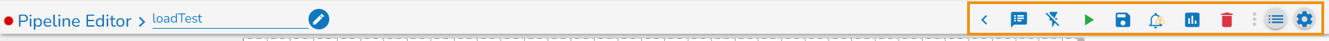 The ***Pipeline Editor*** contains a Toolbar at the top right side of the page with various options to be applied on a Pipeline workflow.