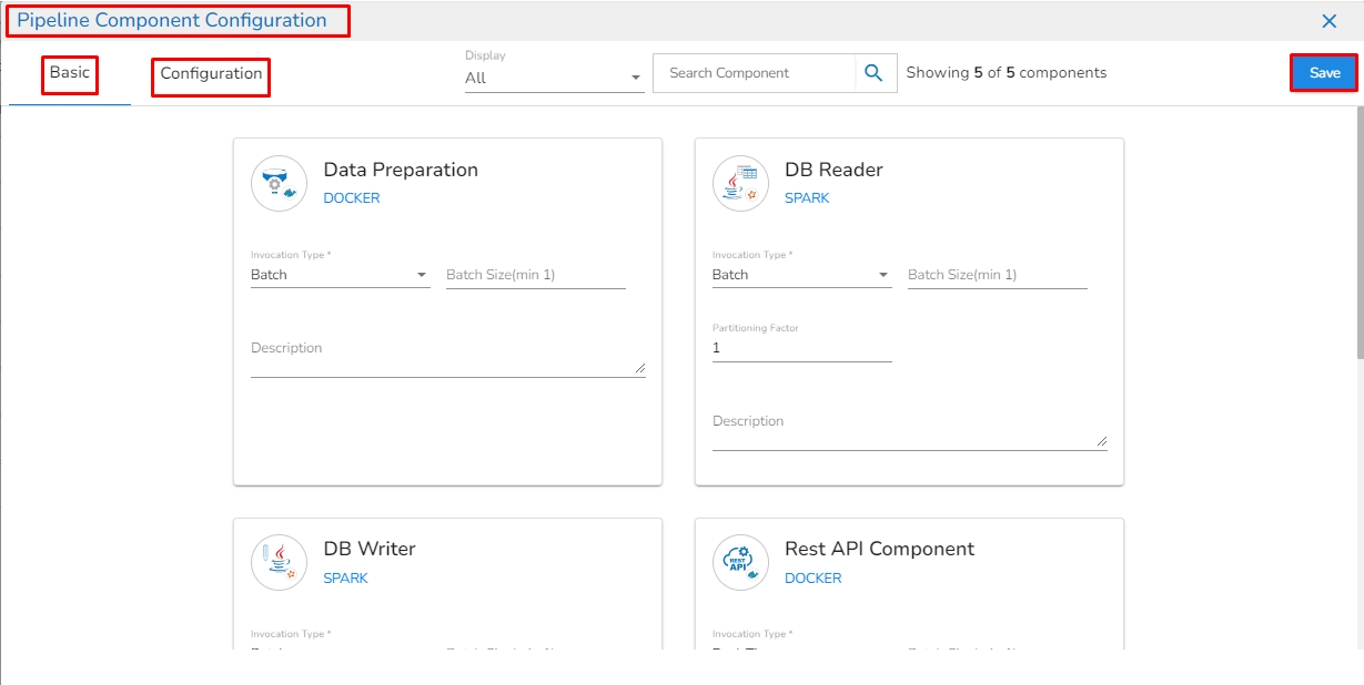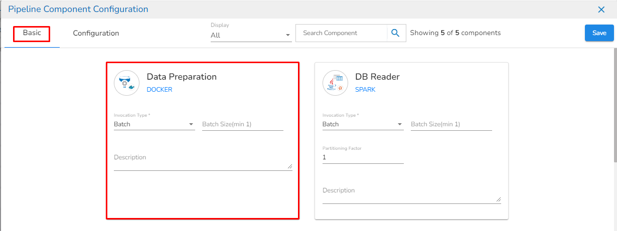 In the Basic tab, the user can configure basic information for the components such as invocation type, batch size, description, or intelligent scaling.