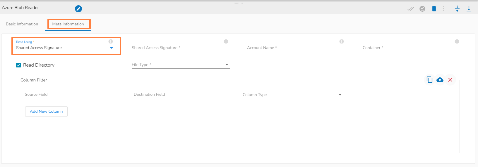 CSV: The Header and Infer Schema fields get displayed with CSV as the selected File Type. Enable Header option to get the Header of the reading file and enable Infer Schema option to get true schema of the column in the CSV file.