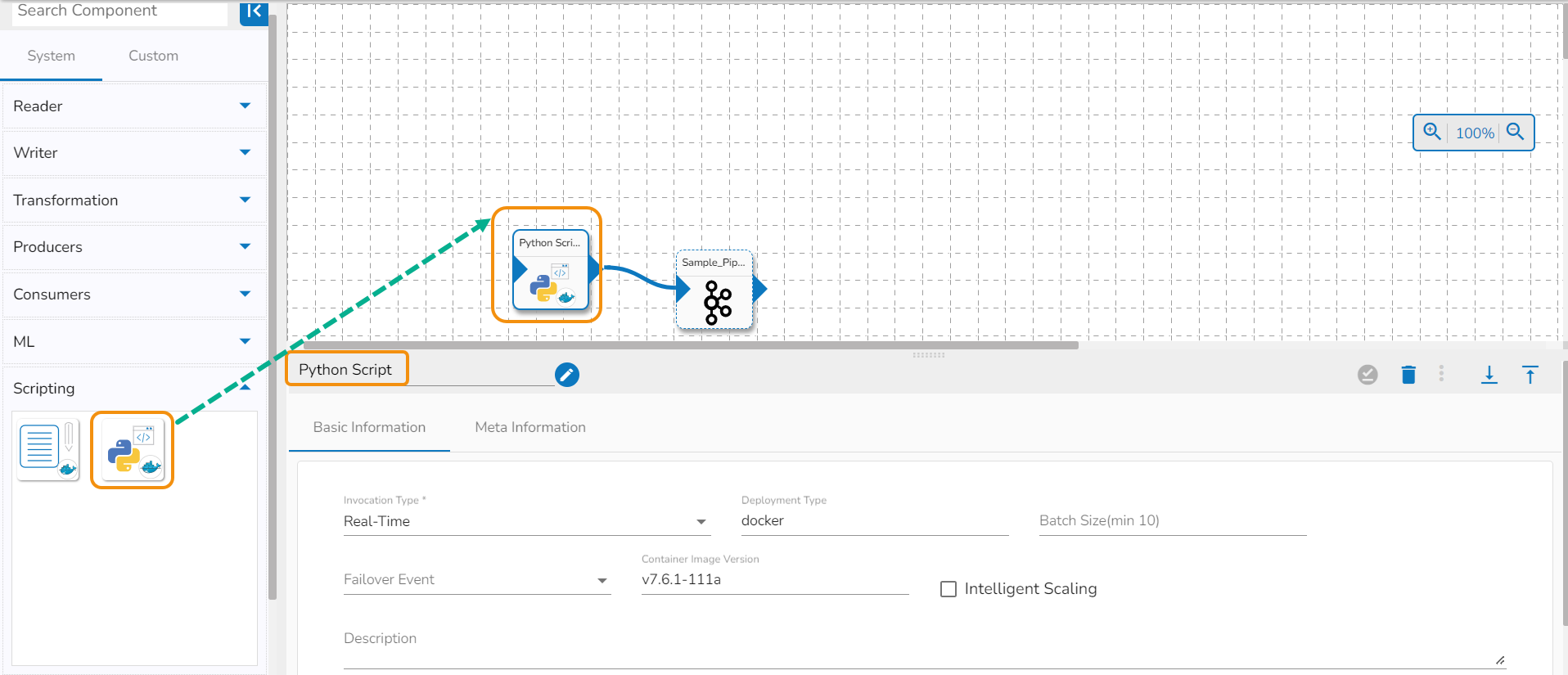 *<mark style="color:green;">Please Note:</mark>* *<mark style="color:orange;">Do not provide '</mark><mark style="color:orange;">**test'**</mark> <mark style="color:orange;"></mark><mark style="color:orange;">as a component name</mark> or <mark style="color:orange;">the component name should not starts with '</mark><mark style="color:orange;">**test'**</mark> <mark style="color:orange;"></mark><mark style="color:orange;">in component name field</mark>* *<mark style="color:orange;">in the Meta information of Python Script component.</mark> The word '**test'** is being used at the backend for some development process.*