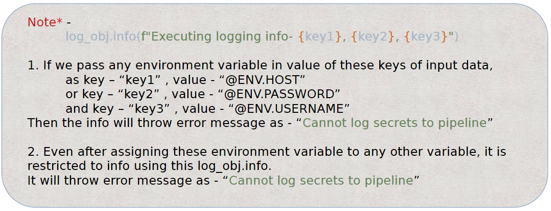 <mark style="color:blue;">**`log_obj.info(f"Executing logging info-{key1}, {key2}, {key3}")`**</mark>