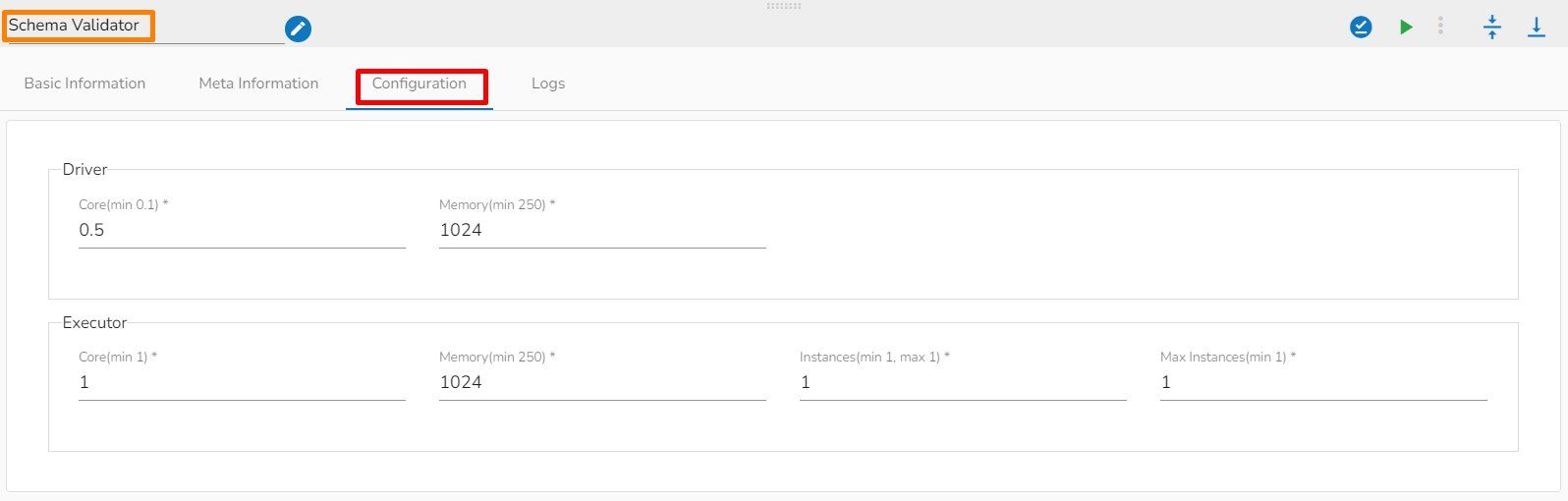 The Schema Validator is a Spark Component, so its configuration is slightly different from the Docker components. When the spark components are deployed, there are two pods that come up: