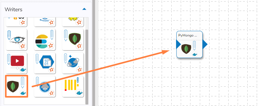 Drag & drop the PyMongo Writer component to the Pipeline Workflow Editor.