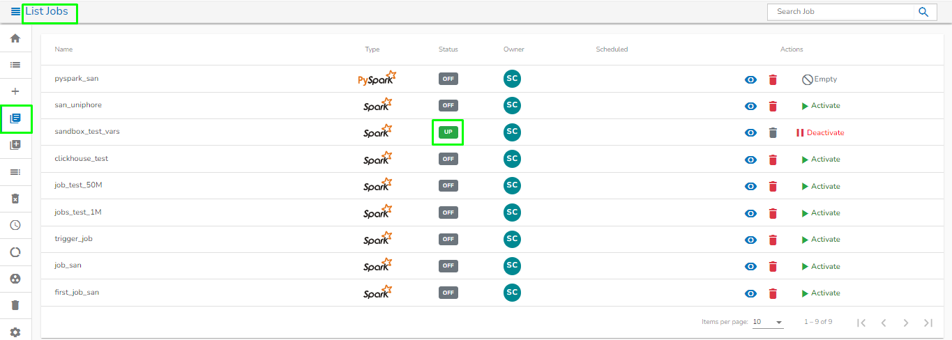It will list all the jobs and also it will show the type of the Job whether it is Spark Job or PySpark Job in the type column.