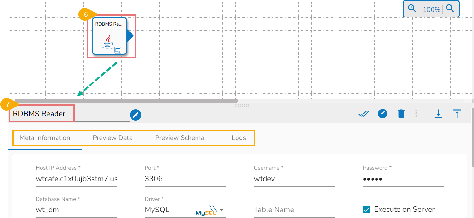 Drag and drop the new required task or make changes in the existing task’s meta information or change the task configuration as the requirement. (E.g., the DB Reader is dragged to the workspace in the below-given image):