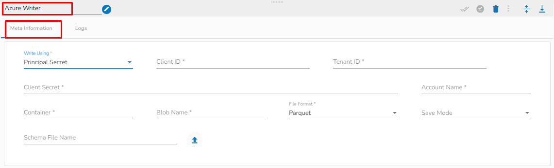 **Please follow the below steps to configure the meta information of Azure Writer:**
