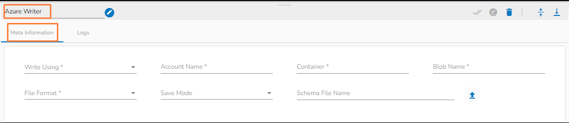 Azure Writer task is used to write the data in the Azure Blob Container.