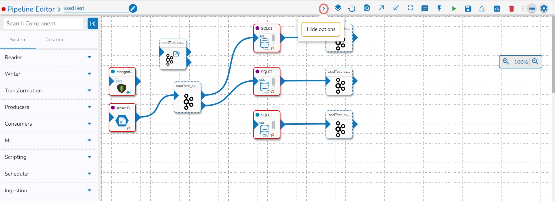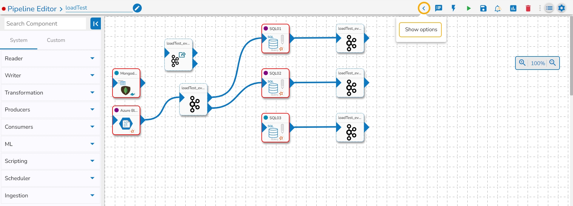 Various options provided on the Pipeline Editor page Toolbar are given below: