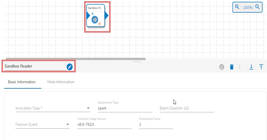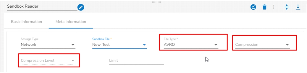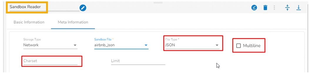 Open the Meta Information tab and fill in all the connection-specific details for the Sandbox Reader.