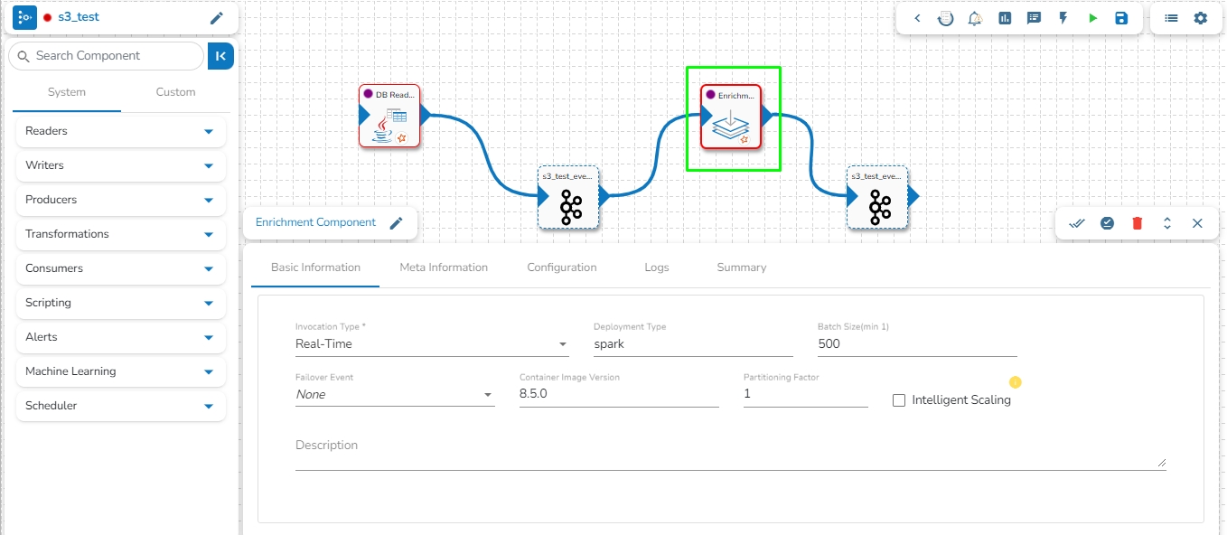 Open the Meta Information tab and fill in all the connection-specific details for the Enrichment Component.