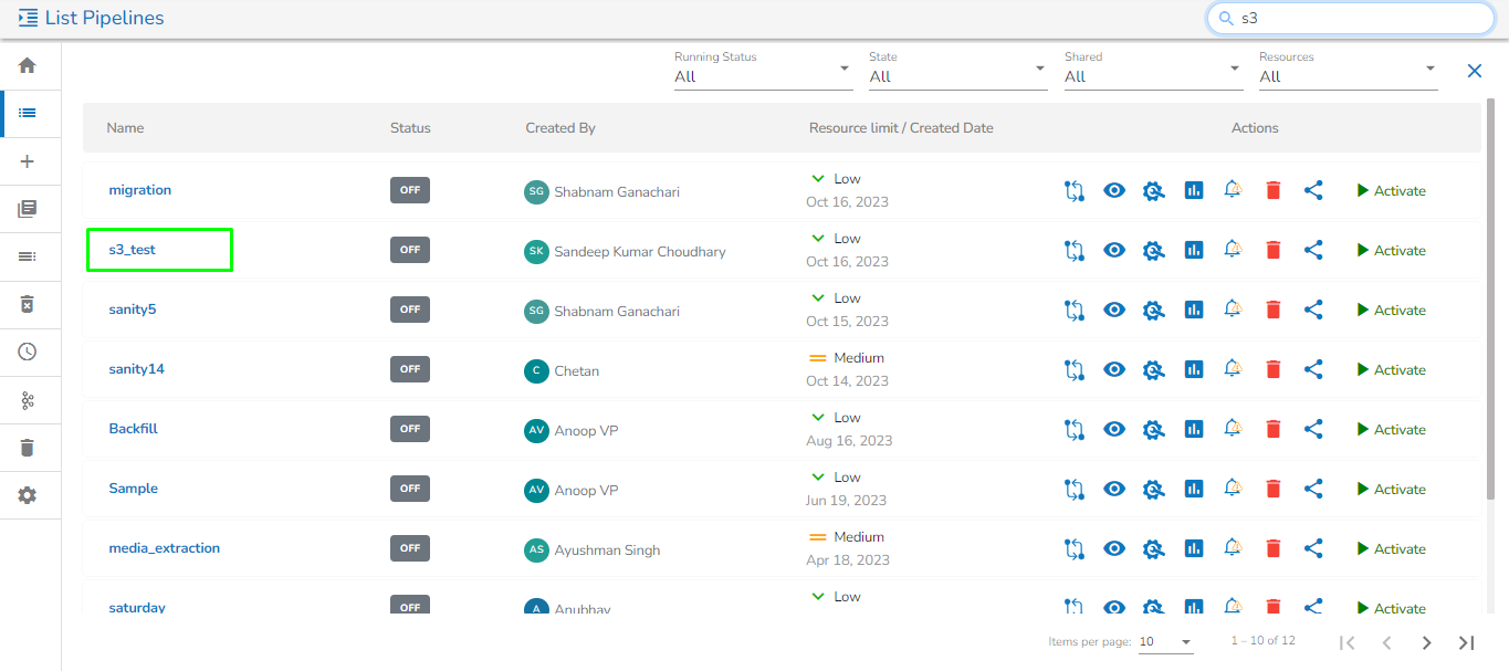* Click the ***Delete*** icon for the selected Pipeline.