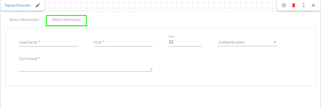 ## **Steps to configure the meta information of Sqoop Executer** <a href="#steps-to-configure-the-sftp-monitor-component" id="steps-to-configure-the-sftp-monitor-component"></a>