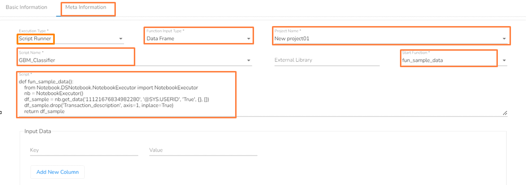 Please follow the below steps to configure the Meta Information when the **Model Runner** is selected as execution type: