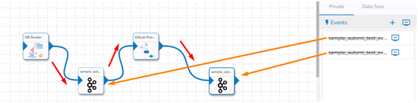 * The DS Lab Runner component reads the data coming to the input event, runs the model, and gives the output data with predicted columns to the output event.
