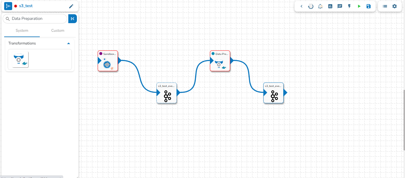 * The user needs to connect the Data Preparation component with an In-Event and Out Event to create a Workflow as displayed below: