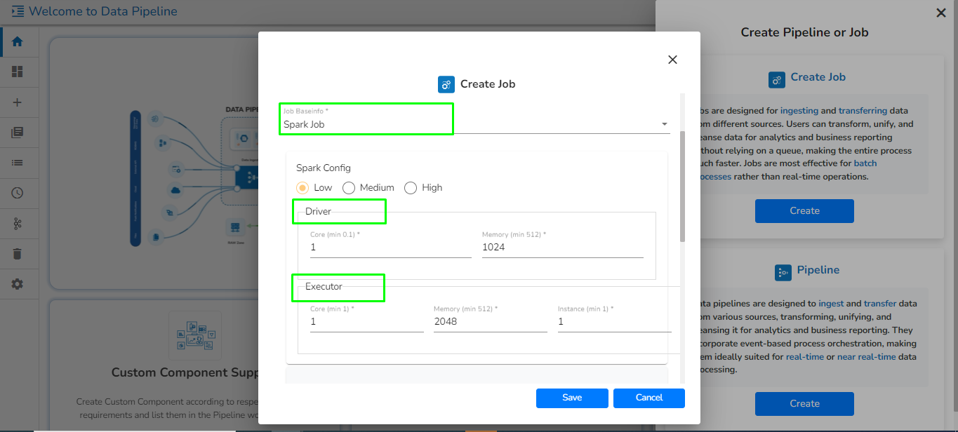 * This feature is used to deploy the Job with high, medium, or low-end configurations according to the velocity and volume of data that the ***Job*** must handle.