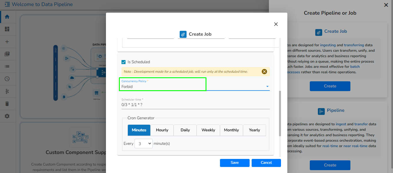 * ***Concurrency Policy** will appear only when "**Is Scheduled"** is enabled.*