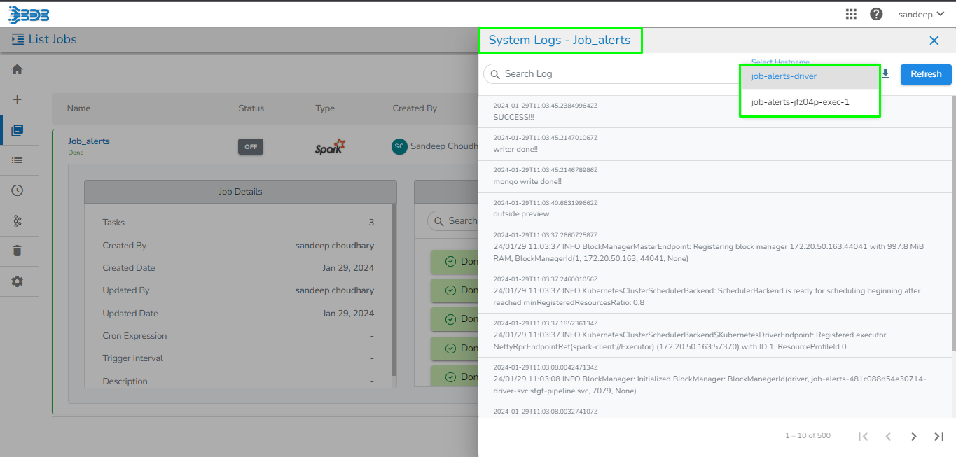 * *The user can view and download logs only for Jobs that have either **successfully run** or **failed**. Logs for the **interrupted jobs** cannot be viewed or downloaded.*
