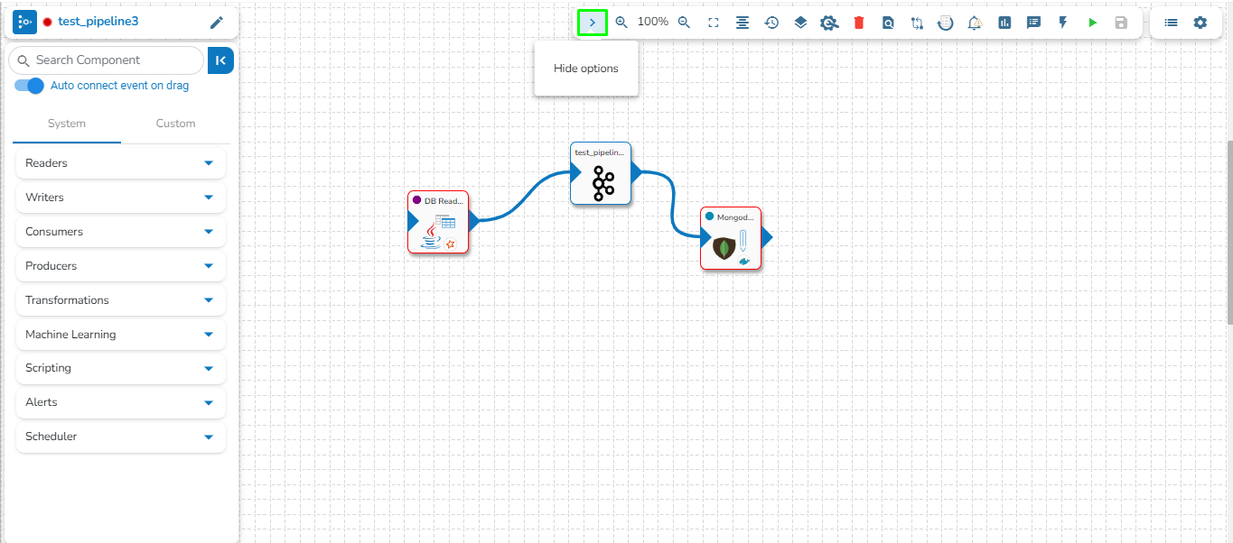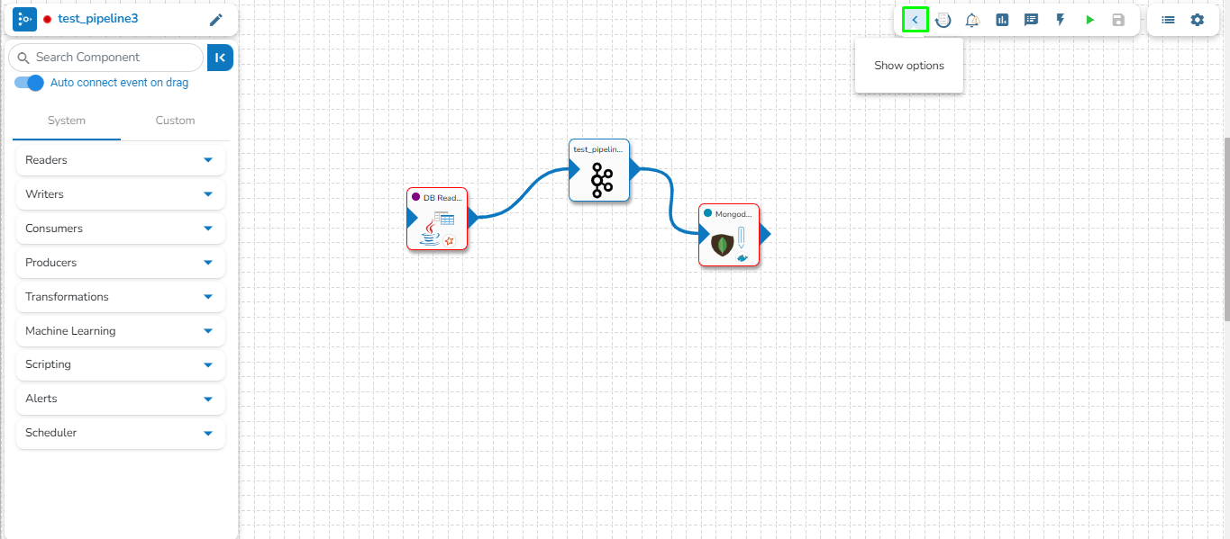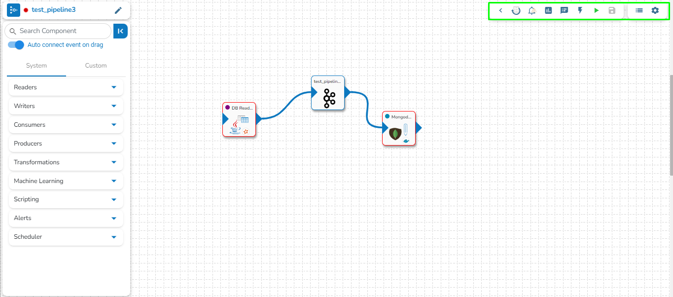 The Pipeline Editor contains a Toolbar at the top right side of the page with various options to be applied on a Pipeline workflow.