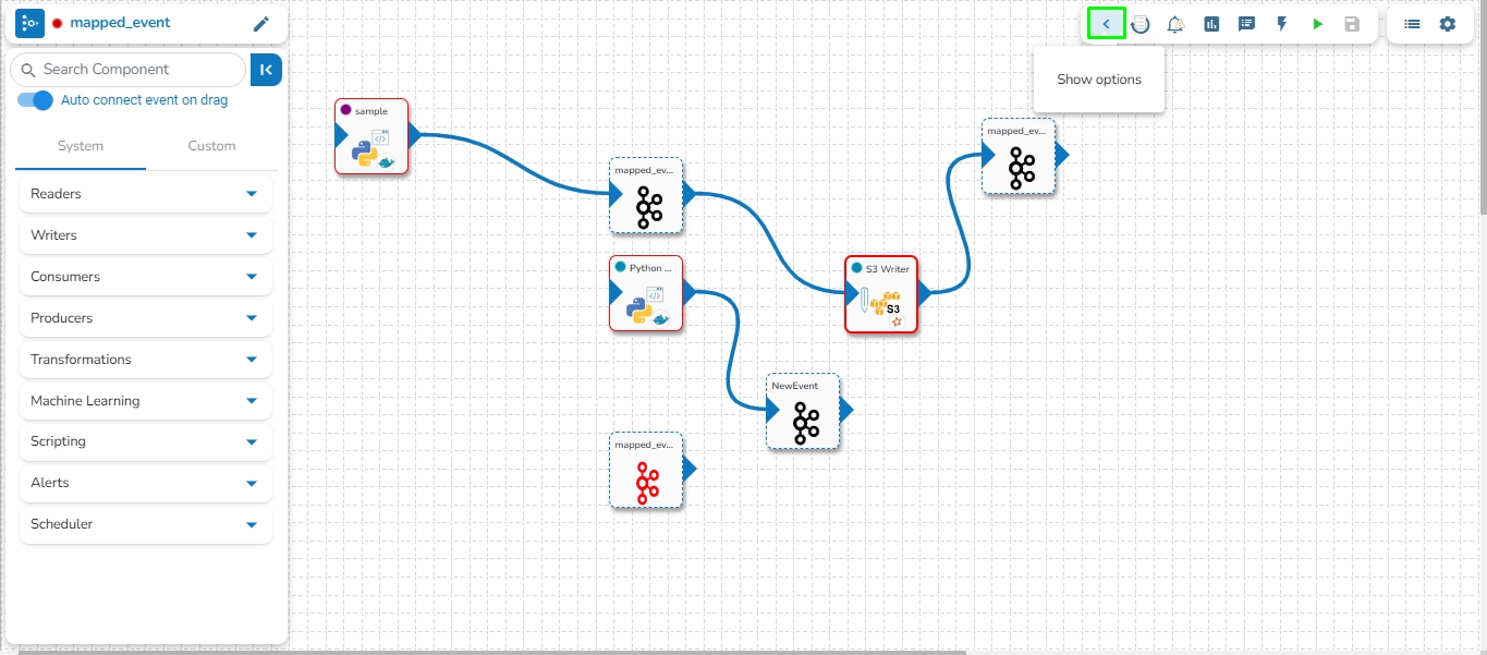 Go to the pipeline toolbar and click on Show Options to expand the toolbar.