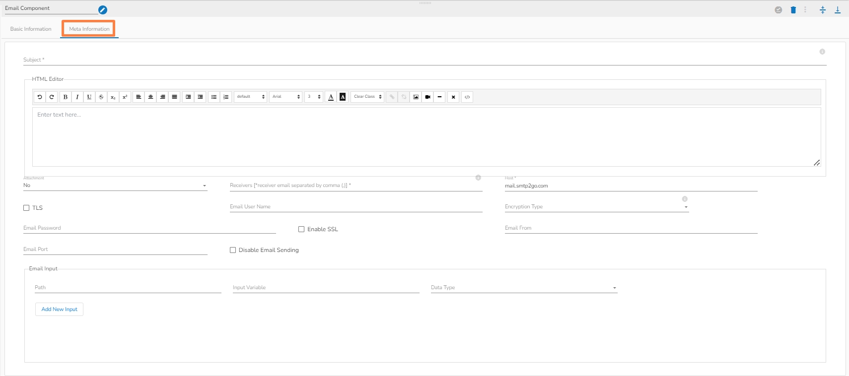 Configuring Meta information of Email Component