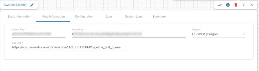 SQS URL: Enter the SQS URL obtained after creating an SQS queue, which will fetch the notification and send it to the out event if there is any modification in the S3 bucket.