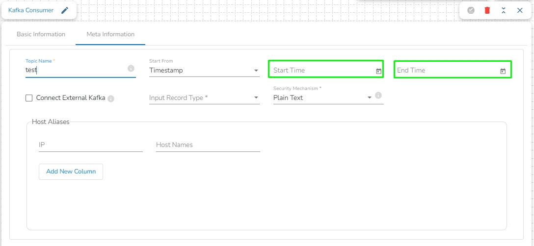 To utilize this option, users are required to specify both the Start Time and End Time, indicating the range for which they intend to consume data. This allows consumers to retrieve messages within the defined time range for processing.