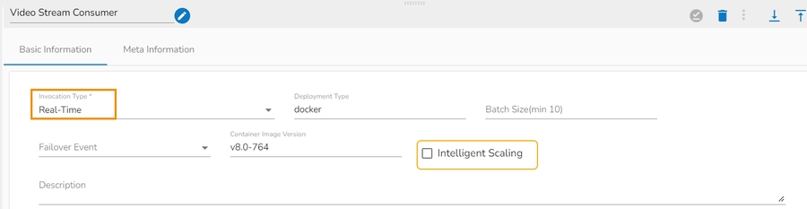 Select the Meta Information tab and provide the mandatory fields to configure the dragged Video Stream Consumer component.