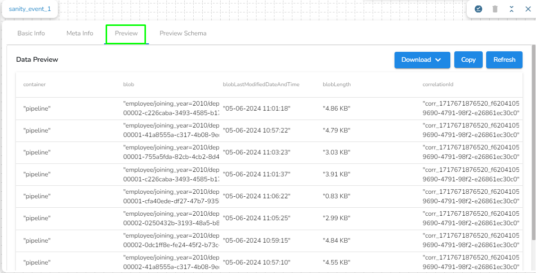 Blob: Name of the blob present in the specified path.