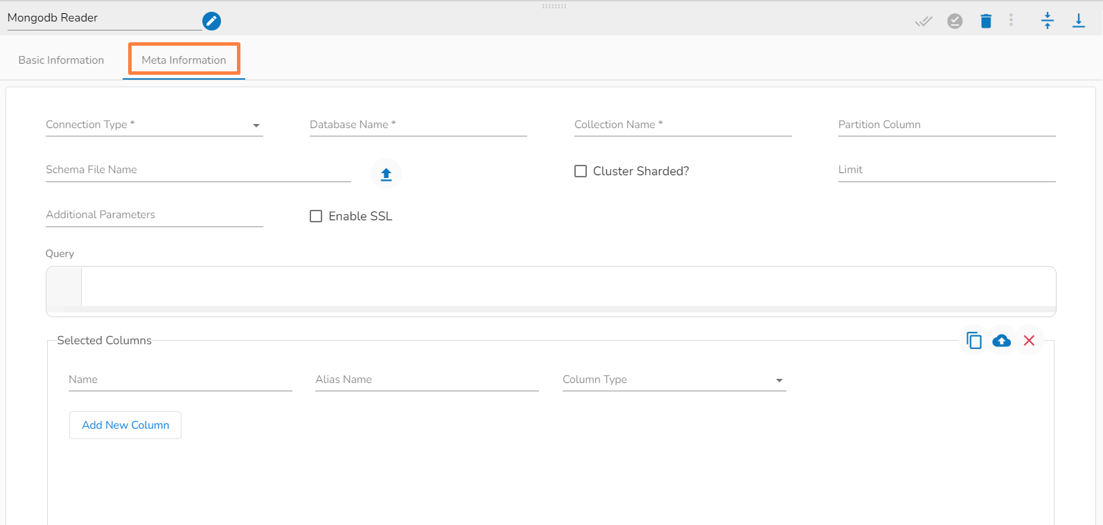 ## **Configuring the Meta Information tab of the MongoDB Reader**