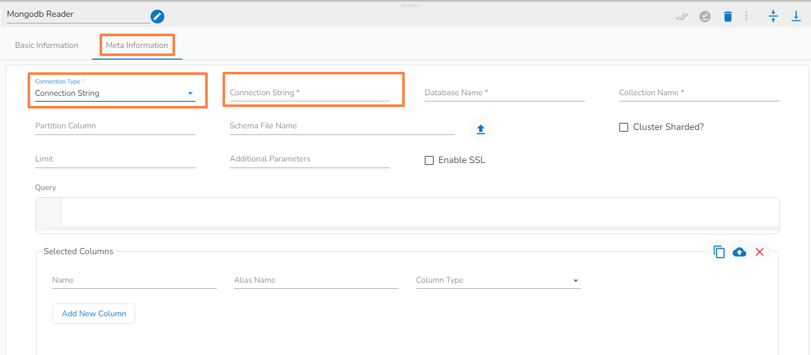 iii. **Meta Information Tab** with **Connection String** as **Connection Type.**