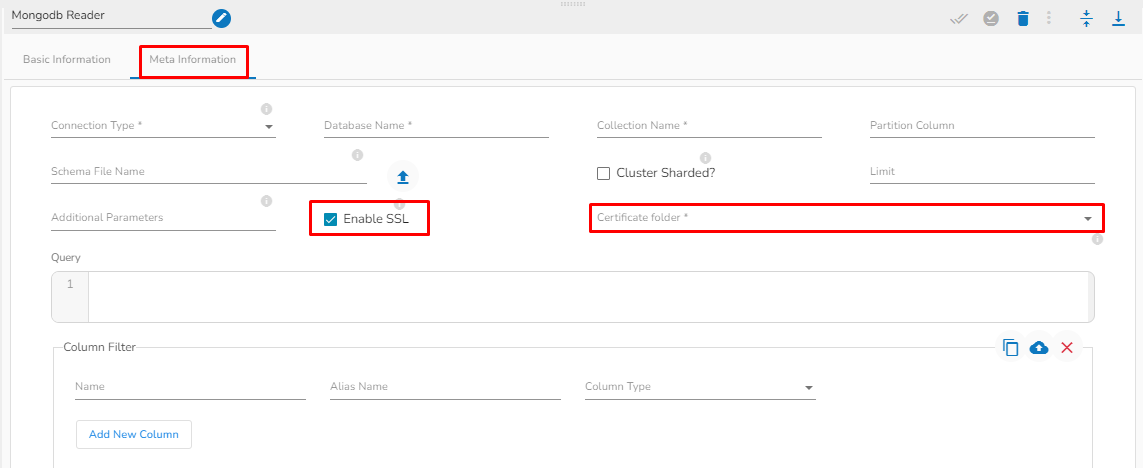 <figure><img src="https://content.gitbook.com/content/wT6nkX9iZNRiZKBnpFmn/blobs/QFSOrCnzgHNqQ9ypoBEd/image.png" alt=""><figcaption><p>Meta Information of MongoDB reader with enabled "Enable SSL" field</p></figcaption></figure>
