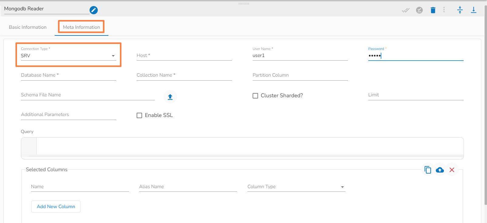 ii. **Meta Information Tab** with **SRV** as **Connection Type.**