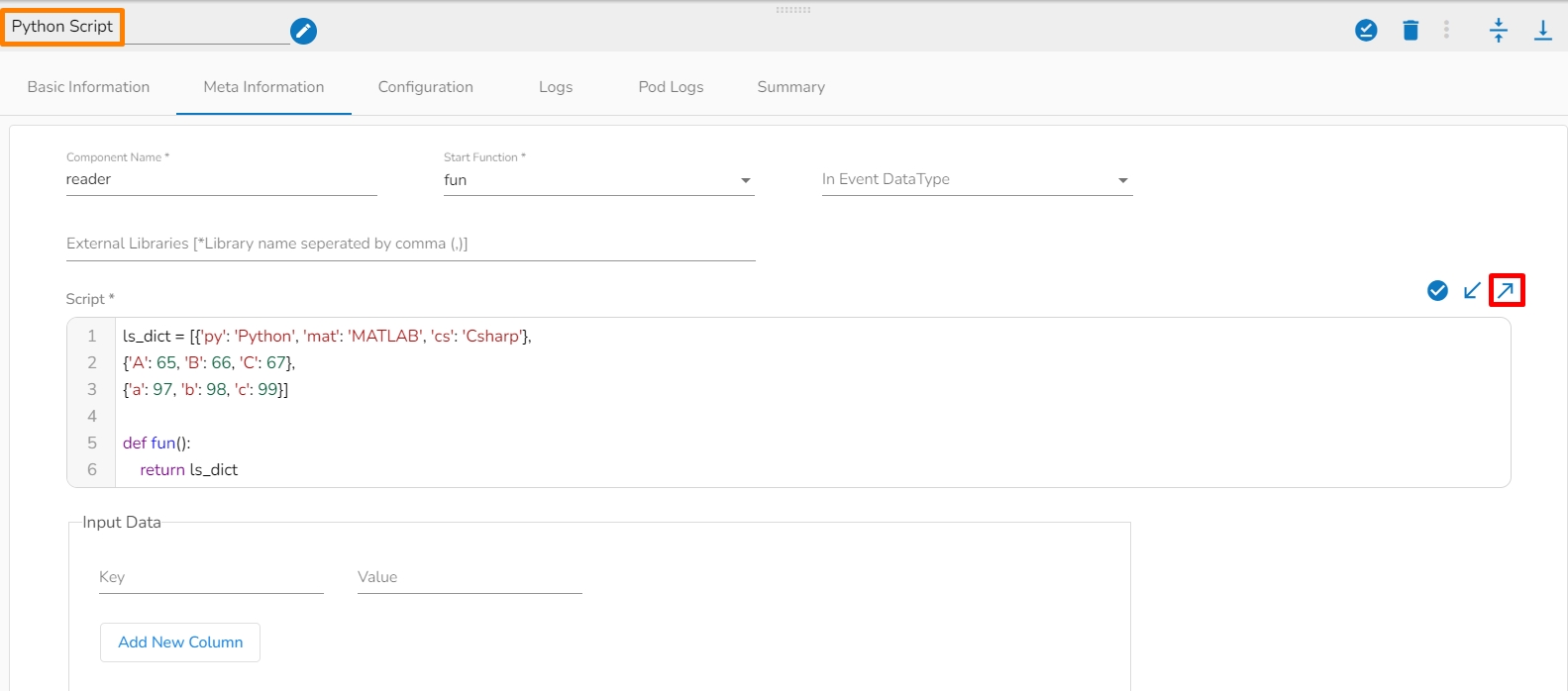 Navigate to the Python Script component configuration section and click on the Pull Script from VCS icon.