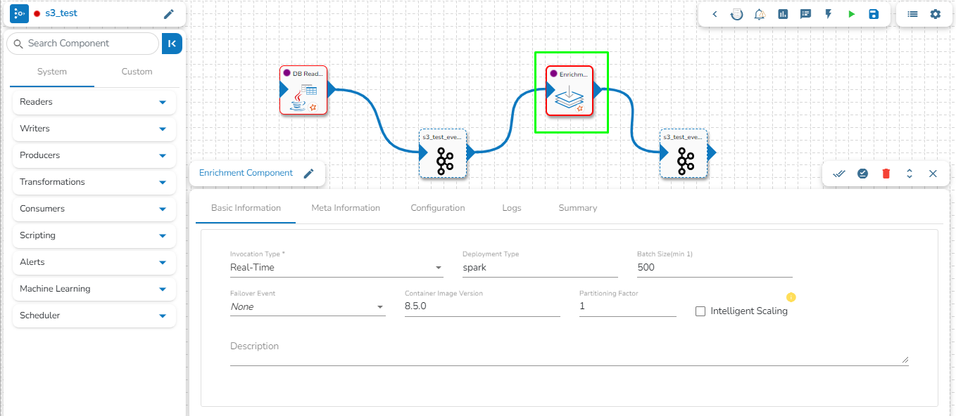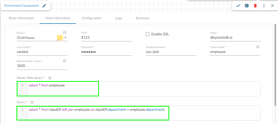 Open the Meta Information tab and fill in all the connection-specific details for the Enrichment Component.