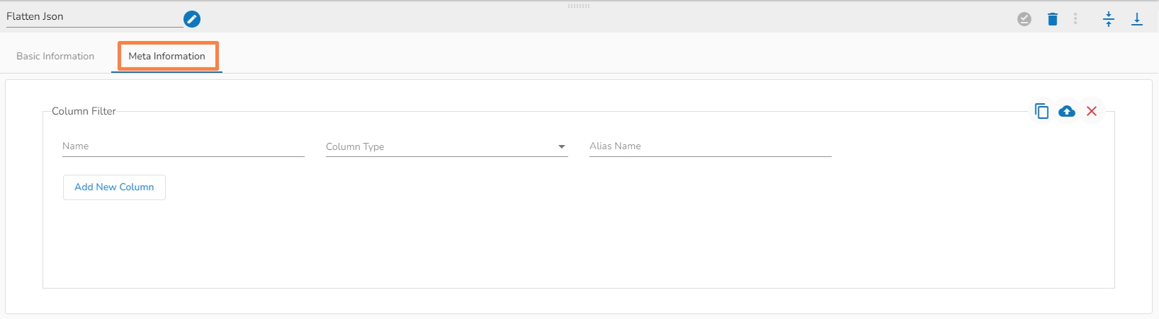 Column Filter: Enter column name to read and optionally specify an alias name and column type from the drop-down menu.