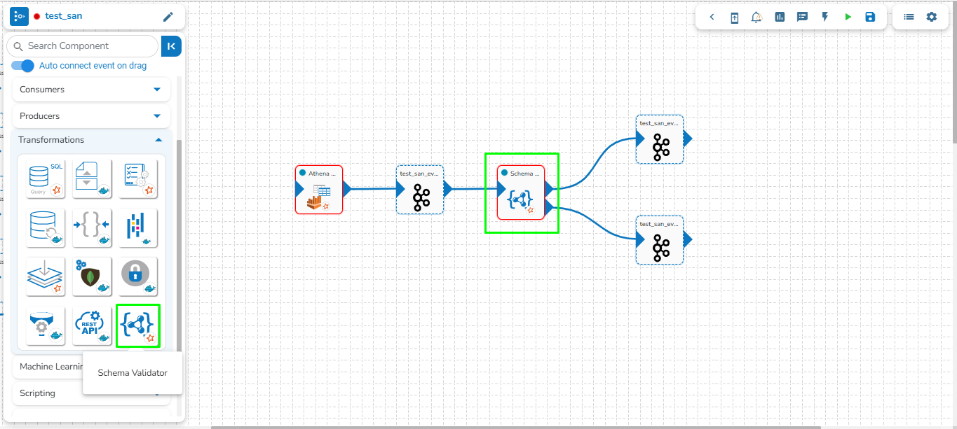 Drag the Schema Validator component to the Pipeline workflow canvas and connect it with the required components.