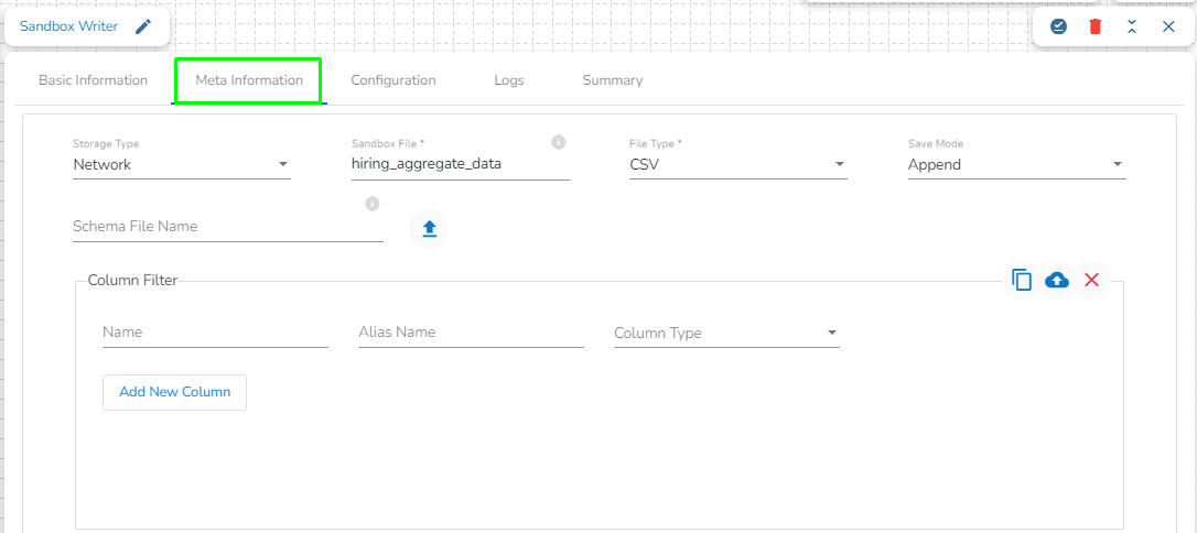 Please follow the below mentioned steps to configure the Meta Information Tab of Sandbox Writer: