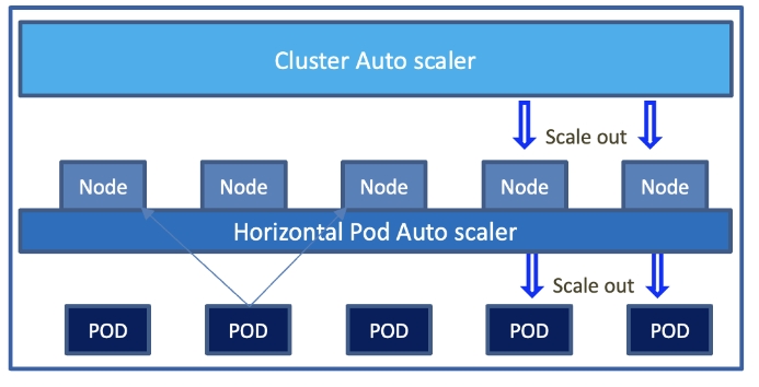 Kubernetes Cluster auto scaler will scale in and scale out the Nodes based on CPU and Memory Load.