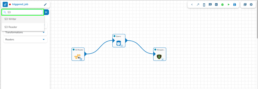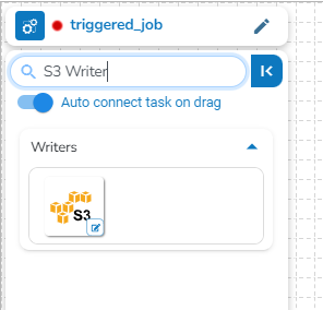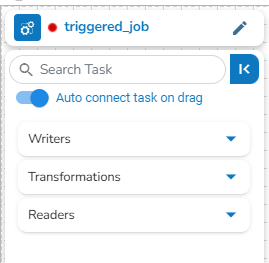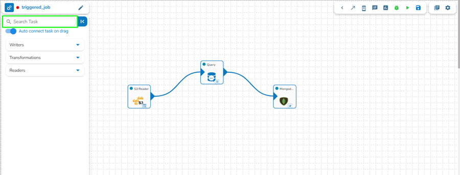 Once the Job gets saved in the Job list, the user can add a Task to the canvas. The user can drag the required tasks to the canvas and configure it to create a Job workflow or dataflow.