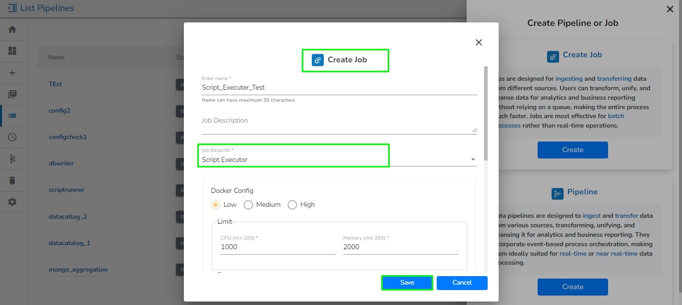 The Script Executer Job gets saved, and it will redirect the users to the Job Editor workspace.