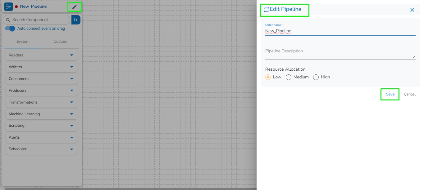 Click the Save option to create the pipeline. By clicking the Save option, the user gets redirected to the pipeline workflow editor.