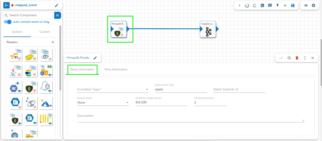 Drag and drop the new required components or make changes in the existing component’s meta information or change the component configuration (E.g., the DB Reader is dragged to the workspace in the below-given image).