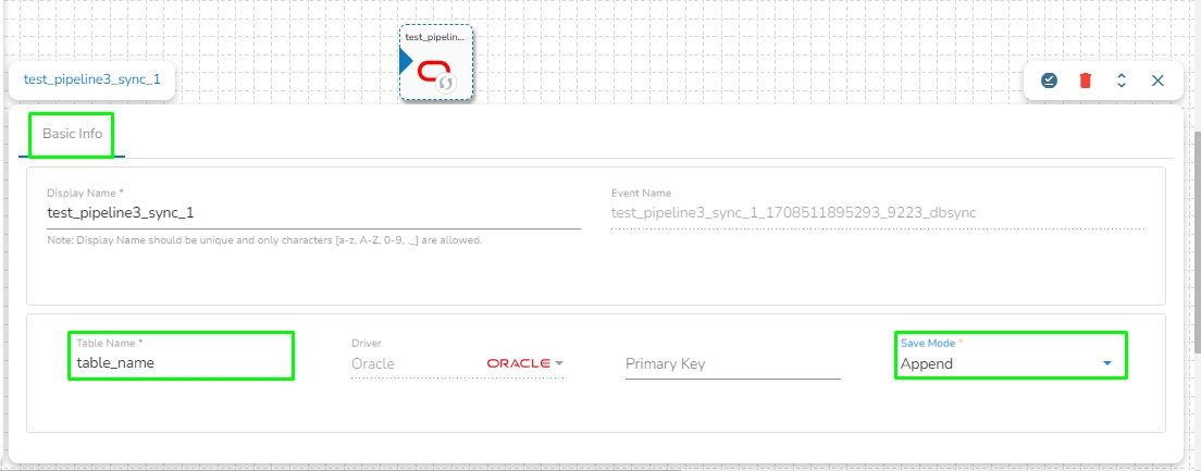 Save Mode: Select save mode from the drop-down: Append or Upsert.