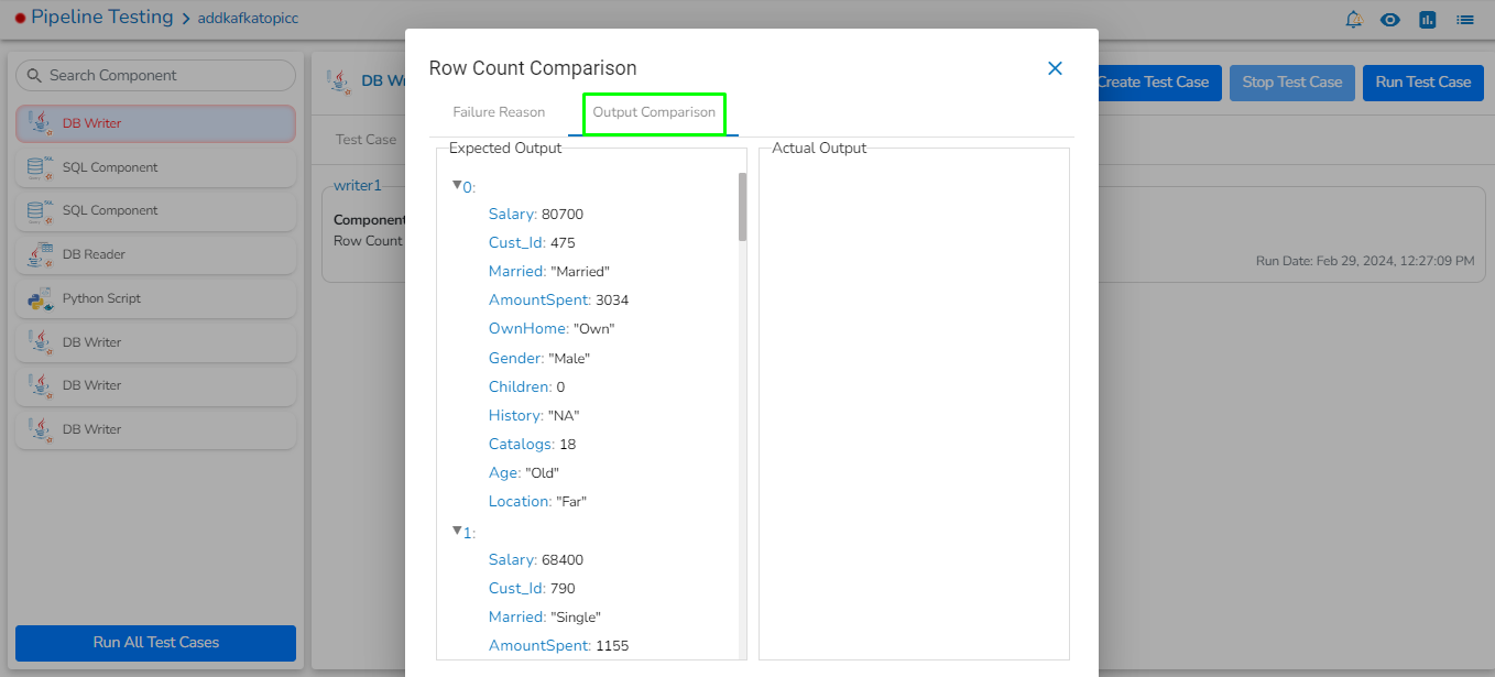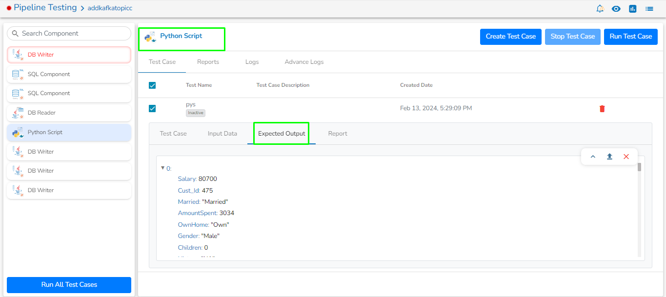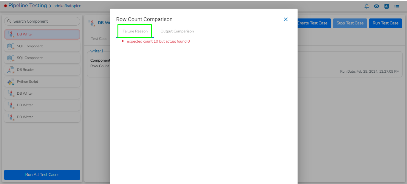 Run Test Cases: It will run single and multiple test cases for the selected component by clicking on the Run Test Cases button.